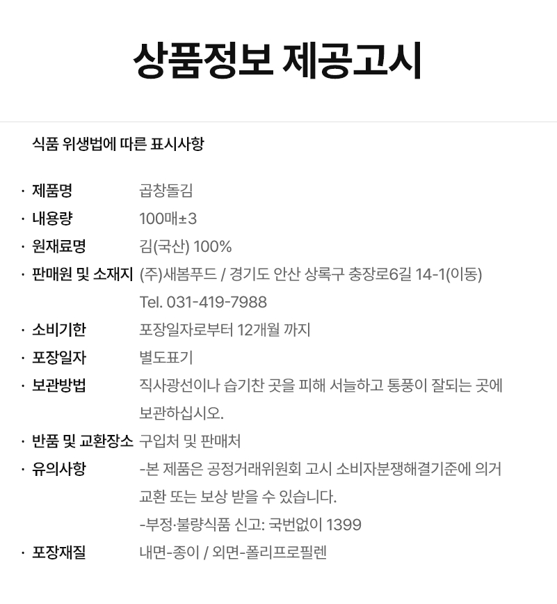 곱창돌김100%